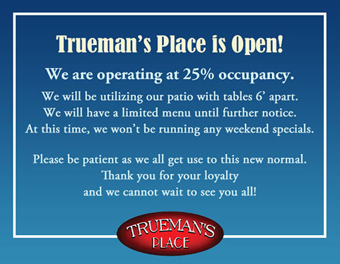 We want Trueman’s Place Bar & Grill in Fenton to be the first place you think of when dining out. The place you go before and after the game. Or if your friend’s dad’s season tickets fell through – the place where you’d watch the game. The place where you can kick back, have a cold beer and a good meal at a great price!